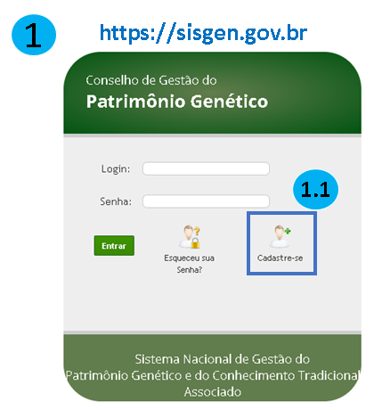 O cadastro poderá ser realizado após a instalação do módulo de segurança, acessando a página so SisGen: sisgen.gov.br.