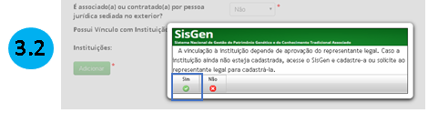 Uma mensagem será exibida, informando que a Vinculação será homologada pelo representante legal da Instituição. No entanto, o sistemaSISGEN poderá ser acessado.