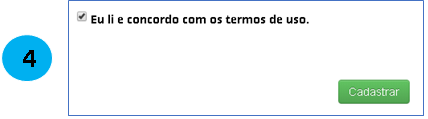 Após, a definição da vinculação, ler as informações do termo de uso, e seguir para a opção cadastrar.