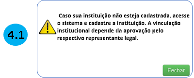 Após o click em adicionar, uma mensagem será exibida onde informa que “a vinculação à instituição depende de aprovação do representante legal….”.